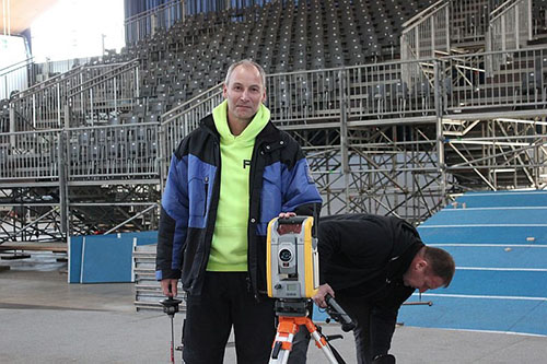 Innerhalb von nur 10 Tagen wird das Herzstück der Arena, die ehemalige EM-Anlage aus Göteborg, regelkonform aufgebaut. Mehr als 2500 Einzelteile mit einem Gesamtgewicht von über 330 Tonnen müssen hierzu bewegt und präzise mit Laser ausgerichtet werden um dieses gigantische Puzzelspiel fertig zu stellen.