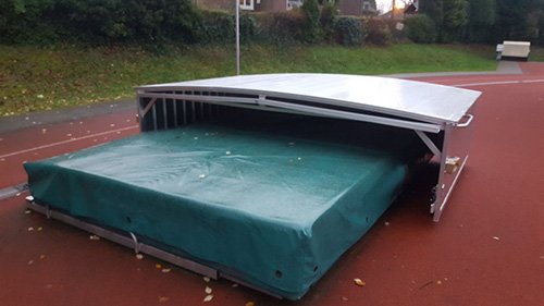 Die ebenfalls von D-TEQ gelieferte Hochsprunganlage des TUSEM Essen bekommt nach erfolgreichen Spendenaktionen und Förderungen endlich die langersehnte Sicherheitsabdeckung. Die gelieferte Aluminium-Abdeckung ist nicht nur formschön sondern auch sehr robust und qualitativ hochwertig, gespickt mit speziellen Details. Die Verantwortlichen des TUSEM sind auf jeden Fall rundum zufrieden sich für diese Abdeckung und D-TEQ als Lieferanten entschieden zu haben.